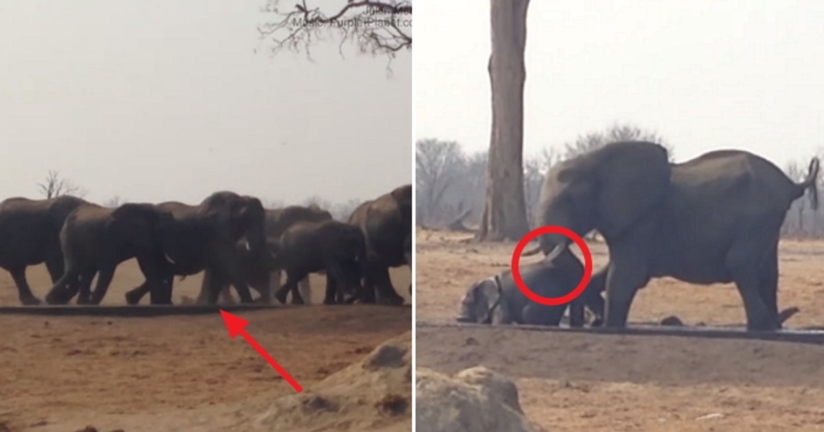 한 어른 코끼리는 일어나지 못하는 새끼에게 다가가 코를 이용해 일으켜 세웠다. 그동안 나머지 코끼리들은 암사자들이 다가오지 못하도록 엄호를 했다.