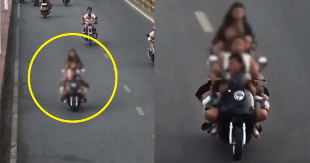 이 오토바이에는 무려 5명의 소녀가 한꺼번에 탑승해 있었다.