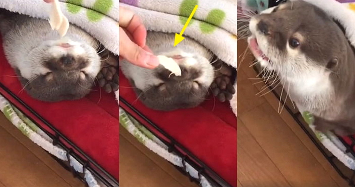 수달의 행동이 귀여웠던 주인이 간식으로 장난을 쳤지만, 녀석은 절대 호락호락하지 않았다.