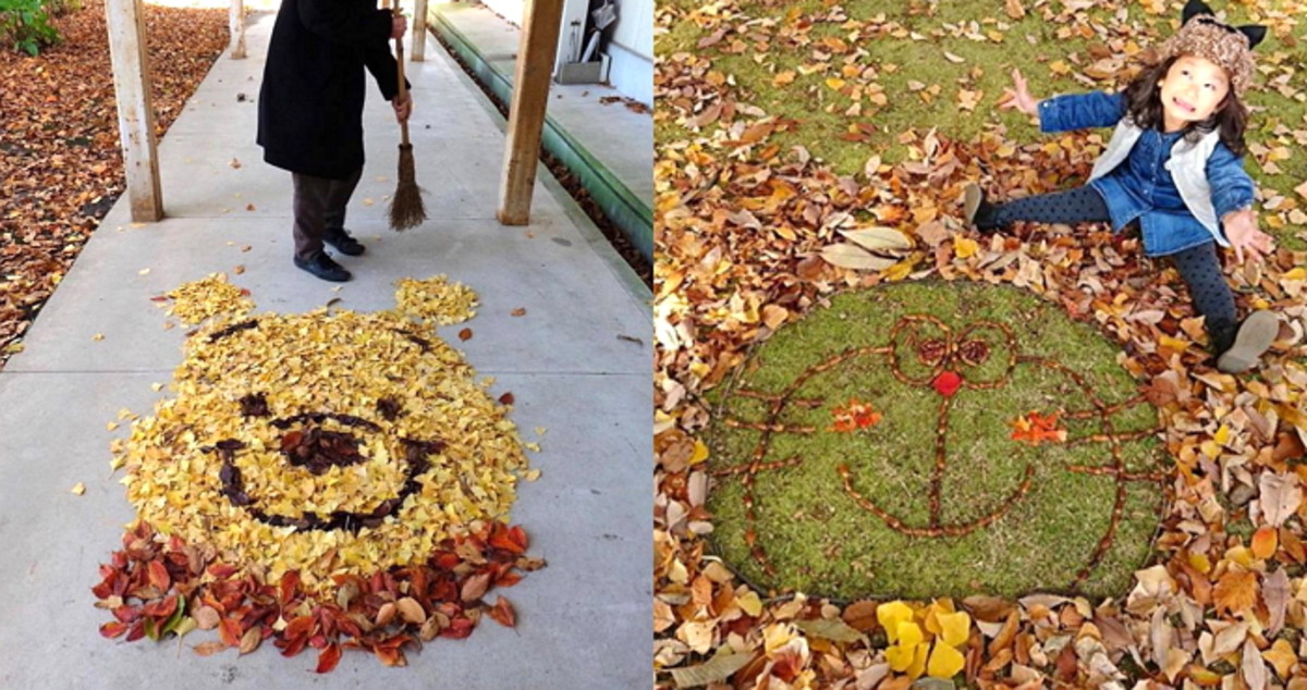 그런 일본에서는 가을마다 수많은 시민이 즐기는 예술 놀이가 있다. 이른바 '낙엽 아트'다.