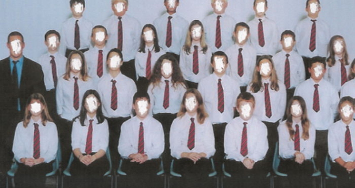 놀랍게도 사진 속 사람의 얼굴은 모두 하얗게 뭉개져 있었다.