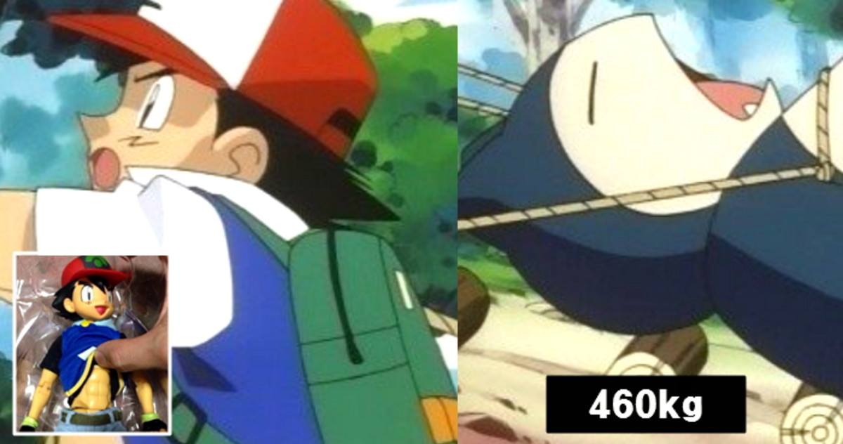 만화에서 지우는 도로 한복판에 누워 자는 460kg 잠만보를 밧줄로 동여매 언덕으로 끌고 올라간다.