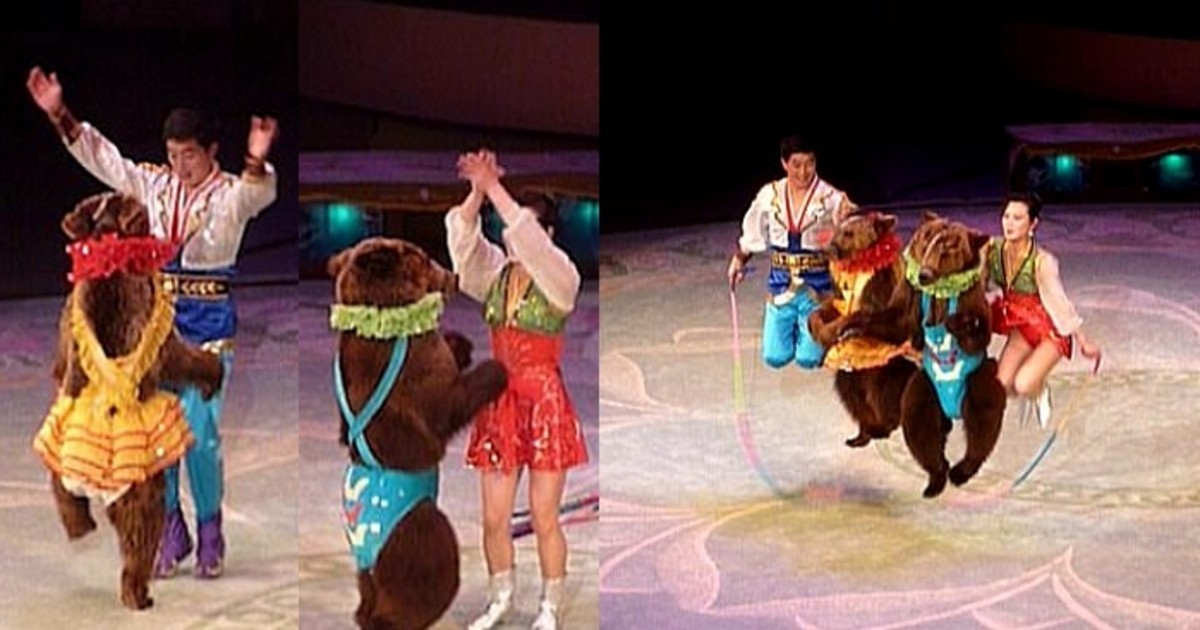 북한을 방문한 남성이 유아복을 입고 사육사 손짓에 맞춰 춤을 추는 서커스 곰을 보고 충격을 받았다고 전했다.
