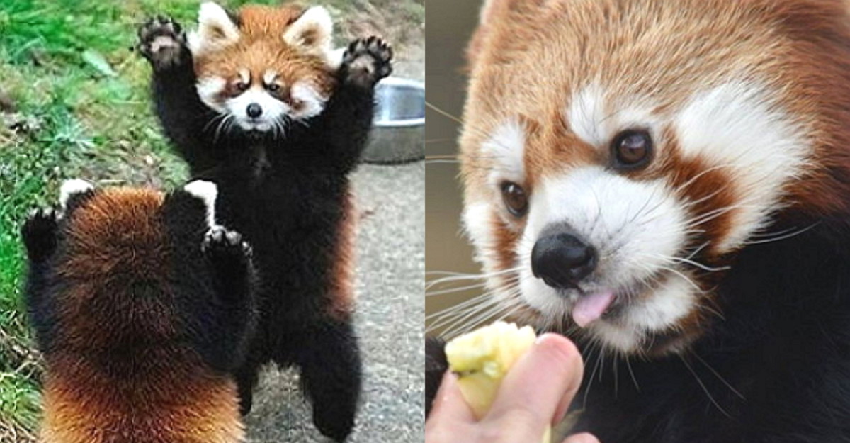 레서판다가 이런 행동을 하는 이유는 시야를 넓게 해서 주변을 경계하기 위한 행동이지만 사람이 보기에는 그저 귀여워 보인다.