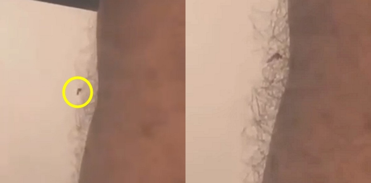 공개된 영상에서 모기는 남성의 다리털을 비집고 틀어가 침을 꽂으려 고군분투 중이다.