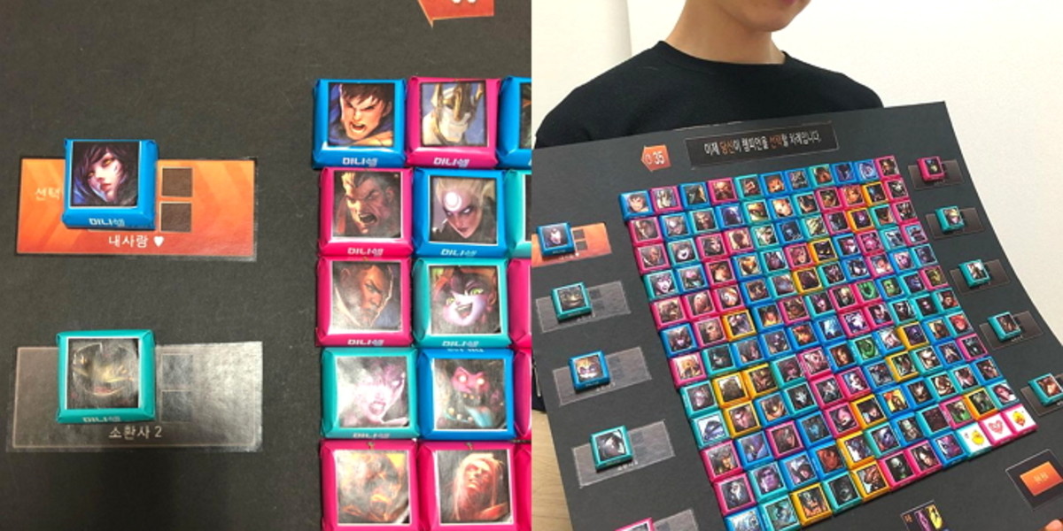 공개된 사진 속 초콜릿 판에는 아리부터 판테온까지 롤 속 챔피언이 대거 등장했다. 무려 138개의 챔피언과 3개의 이모티콘이 합쳐져 141개의 초콜릿으로 이뤄진 이 판은 남자친구의 흐뭇한 미소를 자아내기 충분했다.