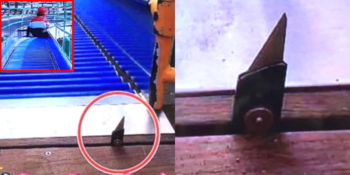 미끄럼틀을 내려가기 전 꼭 잡아야 하는 손잡이 부분에 설치돼 있었기에 아이들이 모르고 잡으면 손, 다리 등을 크게 다칠 수도 있었다.