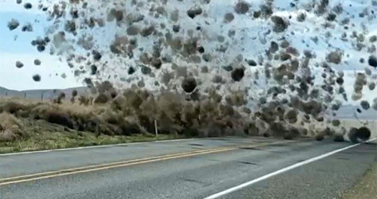 지난 2일(현지 시간) 미국 매체 뉴욕포스트에는 길가에서 자라는 회전초가 토네이도에 휩쓸리며 날아오르는 모습이 포착된 영상이 공개됐다.