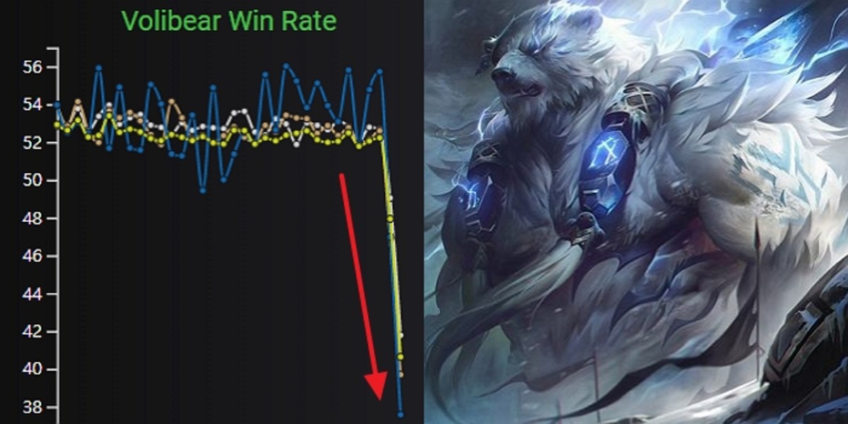 리그 오브 레전드의 통계를 수집하는 사이트 'op.gg'에 따르면 10.11 패치에서 볼리베어의 승률은 38%로 이는 전체 탑 챔피언 중 53위에 해당하는 수치다.