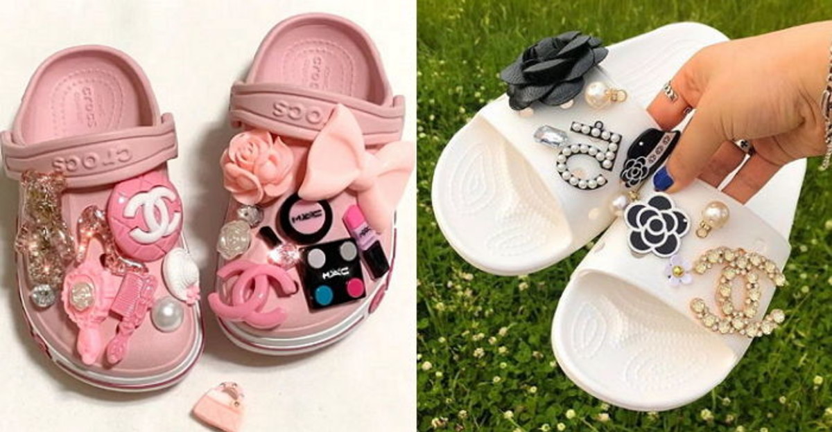 밋밋한 크록스 신발이 영롱하게 빛나는 크리스털 장식과 샤넬 로고 지비츠가 조화롭게 더해져 고급스러운 명품신발로 변신한 느낌이다.