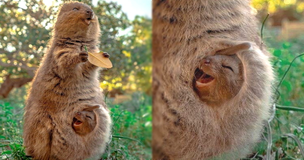 최근 해외 온라인 커뮤니티 '레딧(Reddit)'에는 어미 쿼카와 배주머니 속에서 행복한 미소를 짓는 아기 쿼카 사진이 올라왔다.