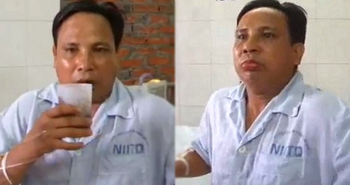 물을 입에 넣고도 삼키지 못하고 온몸을 고통스럽게 움직였다. 남성은 끝까지 물을 삼키려고 노력해 간신히 한 모금을 넘겼다.