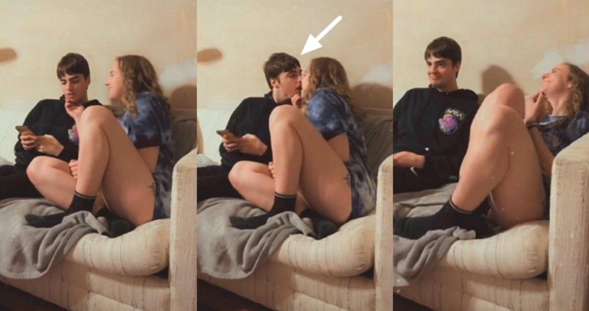 영상에는 남사친과 소파에 앉아 TV, 스마트폰을 보다가 갑자기 여성이 키스를 시도하는 모습이 담겼다.