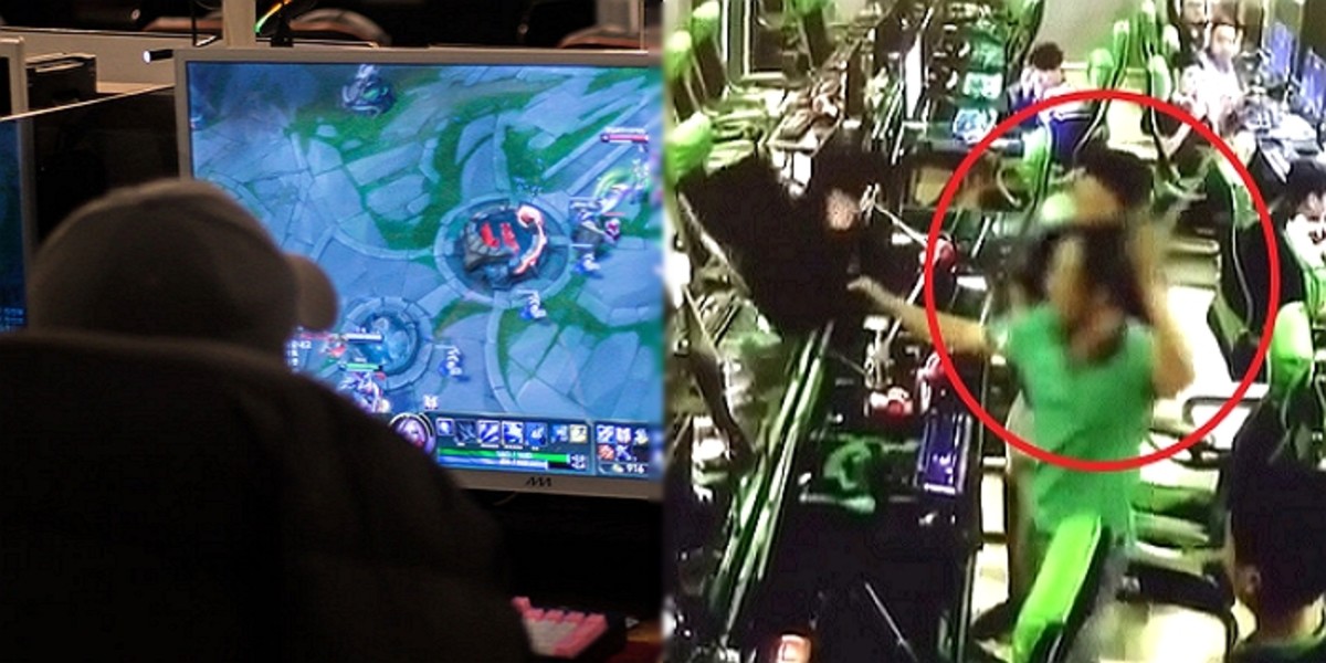 공개된 영상에는 PC방으로 보이는 곳에서 컴퓨터를 향해 힘껏 테니스 라켓을 휘두르는 남성과 이를 말리는 직원의 모습이 담겼다. 옆에는 이 모습에 충격을 받은 듯 가만히 서 있는 소년의 모습도 보인다.