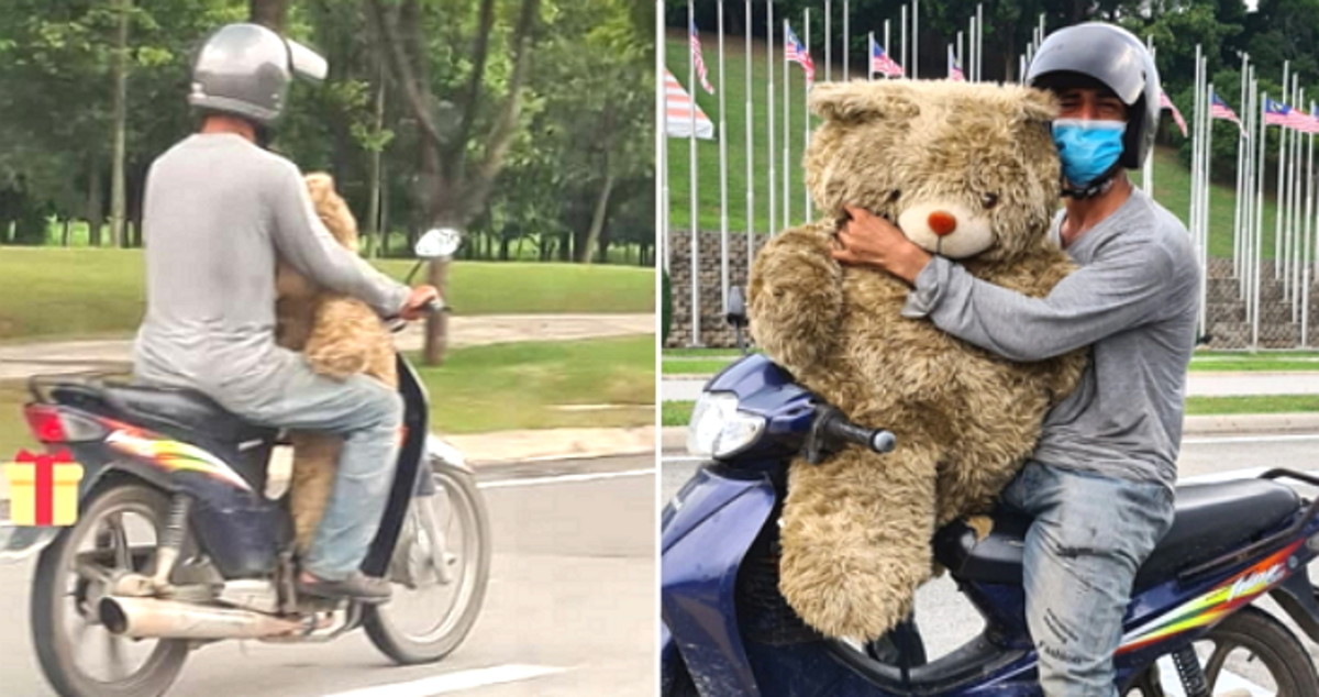 지난 25일(현지 시간) 말레이시아 매체 '월드 오브 버즈(WORLD OF BUZZ)'에는 말레이시아에서 대형 곰 인형을 싣고 가는 오토바이 운전자 사진과 그 사연이 전해졌다.