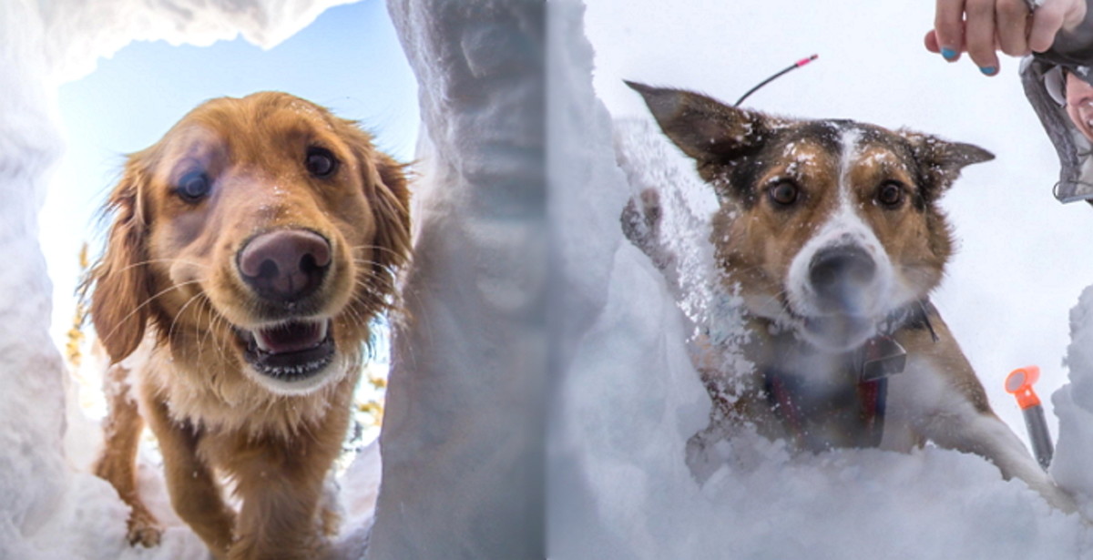 사진 속 강아지들은 눈에 파 묻힌 실종자를 찾아내는 훈련을 하고 있는 것으로 보인다.