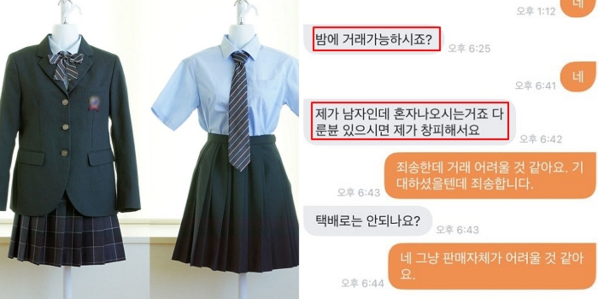 이에 따르면 교복을 사겠다고 나선 이는 성인 남성이었다. 그는 "교복을 '수집'한다"며 거래를 희망했다.