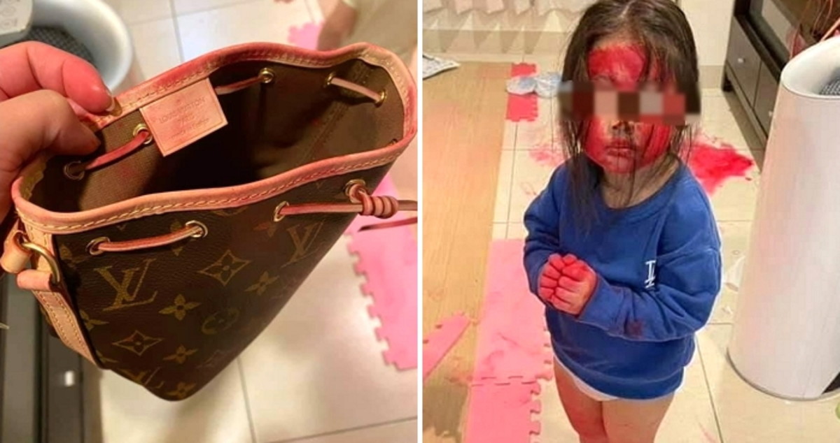 200만 원이 넘는 고가의 루이비통 핸드백이 새빨간 립스틱으로 칠해져 있는 모습을 본 엄마는 기겁하고 말았다.