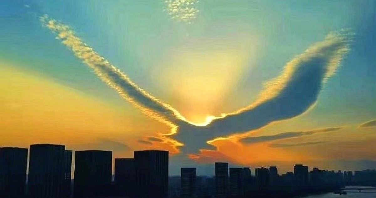 지난 8일(현지 시간) 중국 매체 인민망의 공식 웨이보 계정에는 희망과 건강의 상징인 불사조 구름이 하늘 위에 떠오른 사진들을 공개했다.