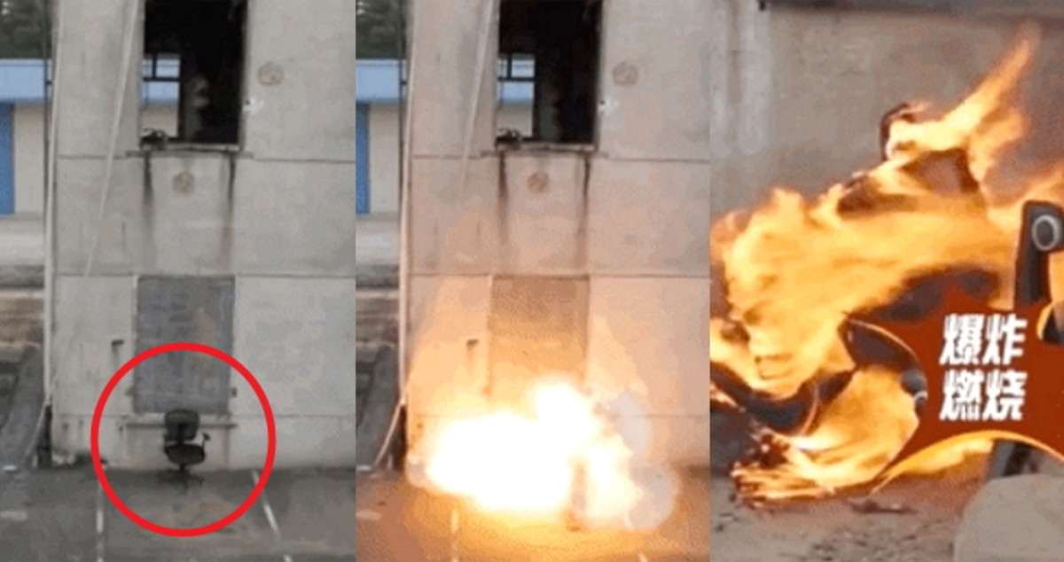 일부 공장에서 생산된 중국산 의자에 큰 압력을 주자 폭발했기 때문.