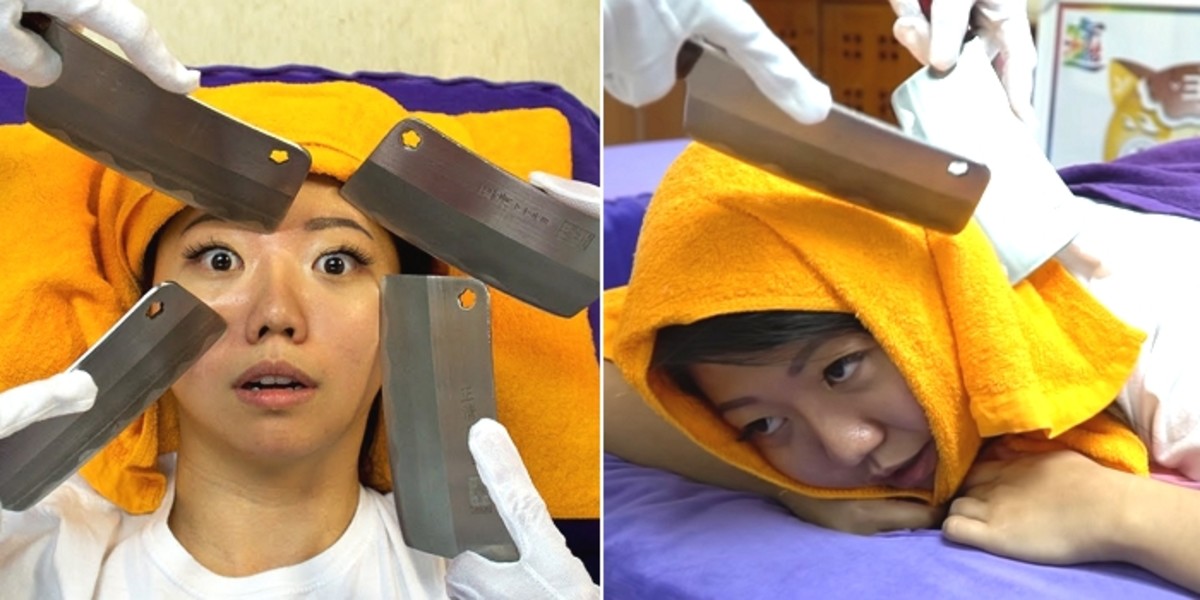 마사지를 직접 체험하는 관광객들의 영상을 보면 커다란 칼이 자신의 몸과 얼굴을 훑는다는 생각에 다소 겁을 먹은 듯한 표정이다.