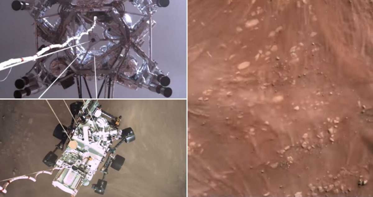 영상에는 탐사용 로버 퍼시비어런스(Perseverance)가 화성에 착륙하는 과정이 상세히 담겼다.