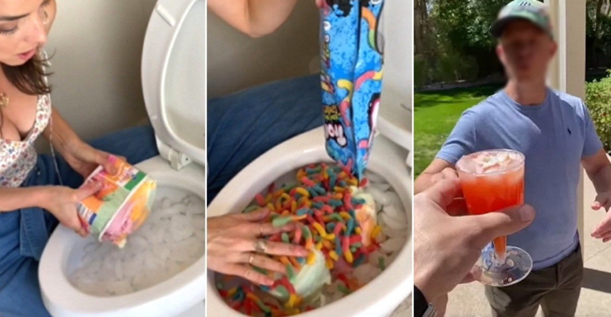 [인사이트] 원혜진 기자 = 화장실 변기에 음료와 젤리, 아이스크림 등을 쏟아부은 음료로 파티를 벌인 여성이 눈살 찌푸리게 했다.