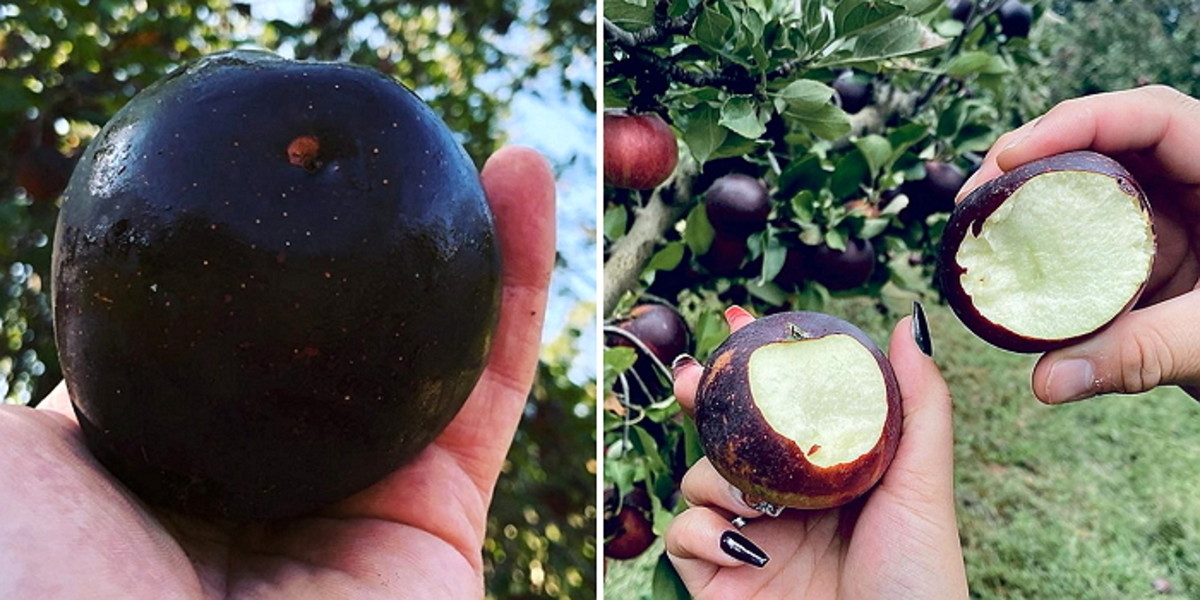 백설 공주를 쓰러지게 한 '독사과'처럼 생긴 이 사과는 '화규'라는 사과 종으로 블랙 다이아몬드 사과라 불린다.