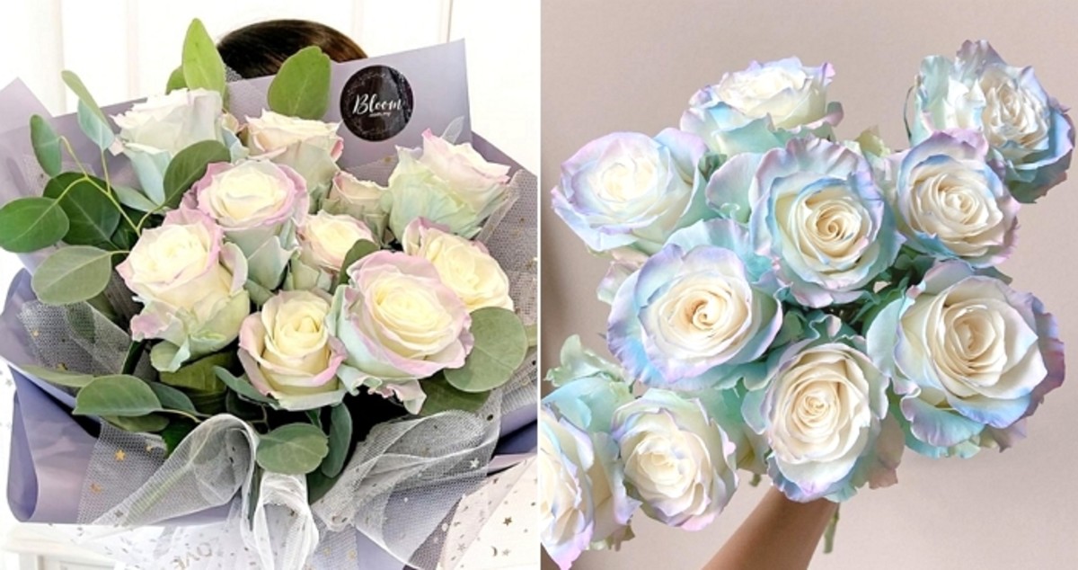 오로라 장미는 일반 장미보다 톤 다운된 핑크, 민트, 보라, 하늘색 등 파스텔톤 색감을 띠는 것이 특징이다.