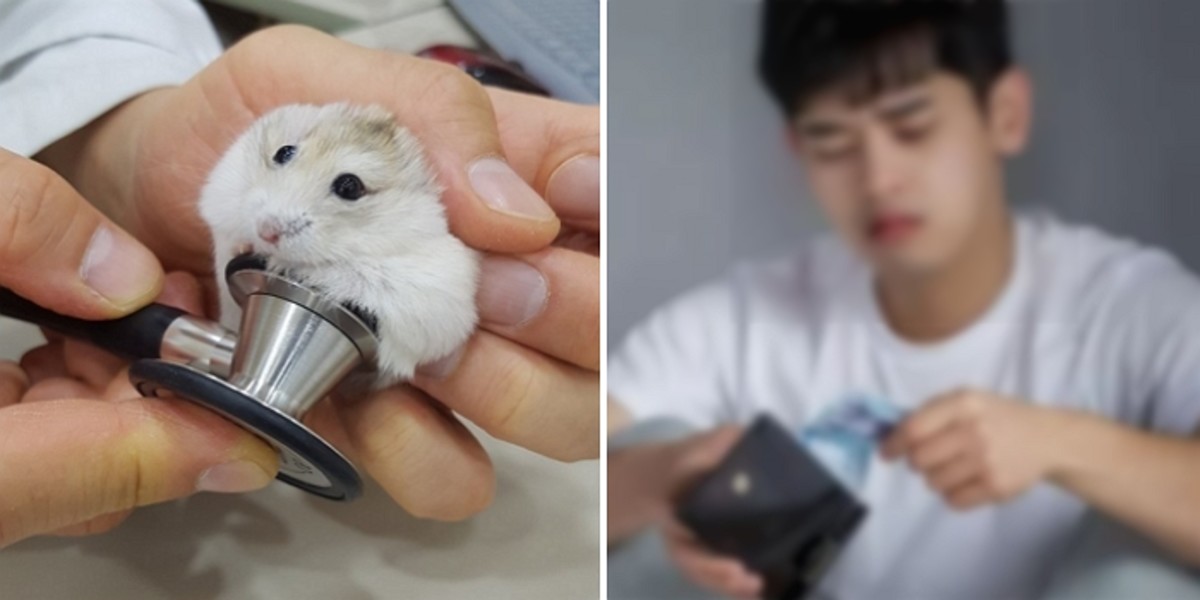 아파서 끙끙대는 햄스터를 데리고 동물병원으로 달려간 그는 청구된 치료비를 보고 입이 떡 벌어지고 말았다.