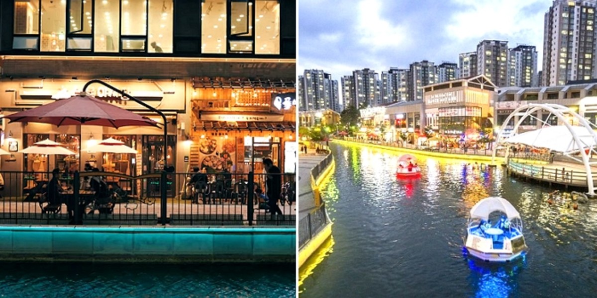 실제로 이탈리아의 베니치아를 모티브로 조성된 테마형 캐널 스트리트로 가운데 수로를 두고 한 쪽에는 식당·카페·상점들이, 다른 한 쪽에는 산책로가 마련돼 있다.