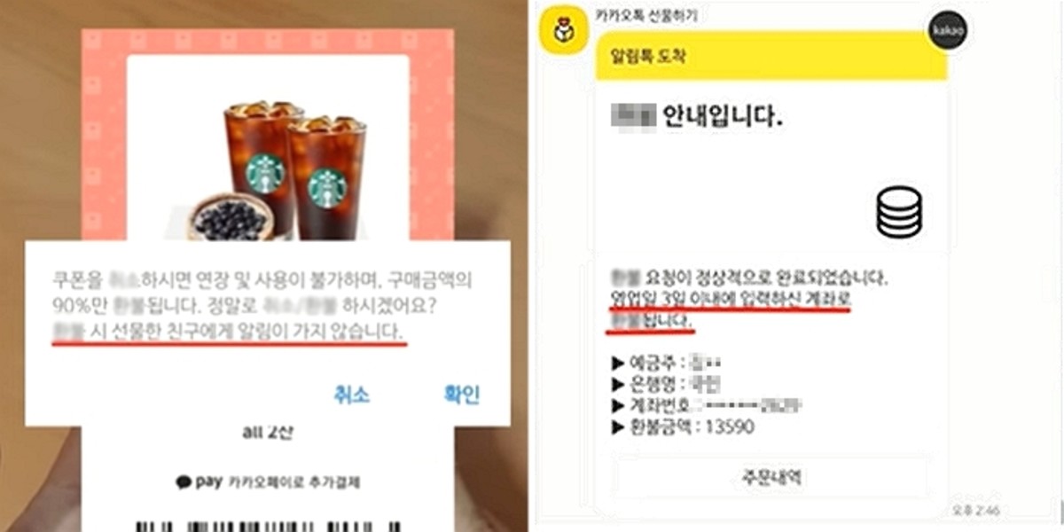 또한 영상의 내용과 달리 카카오 측에 따르면 환불을 하든 사용을 하든 모두 '구매결정 사용완료'로 표기돼 선물 수신자가 환불했는지 안 했는지 알 수 없다.