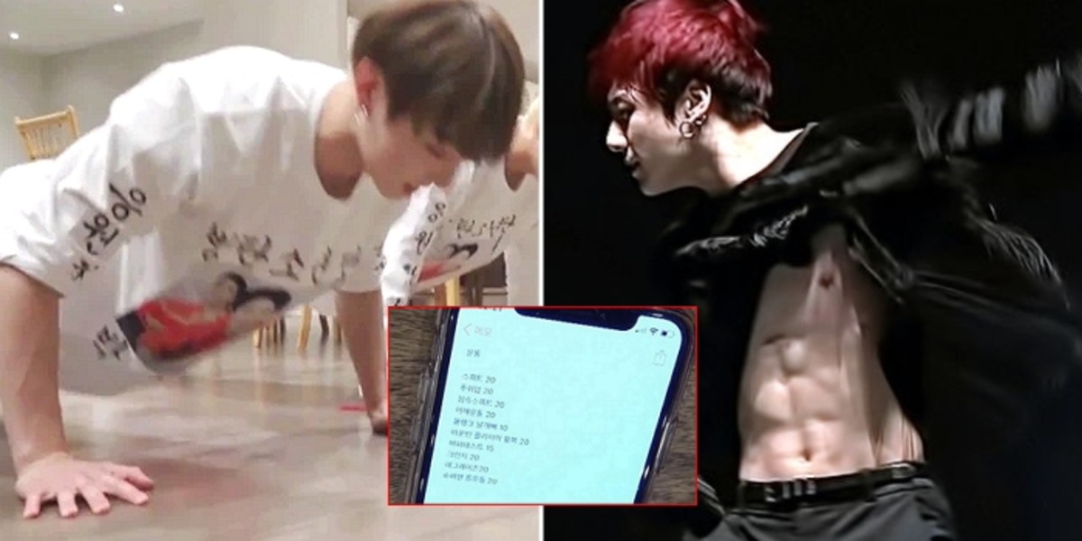 완벽한 복근까지 지닌 그의 맨몸 운동 루틴이 과거 웹예능 '달려라 방탄' 비하인드를 통해 세상에 알려졌다. 정국은 자신의 휴대전화 메모장에 운동 순서와 횟수 등을 직접 기록한 맨몸 운동 루틴을 공개했다.