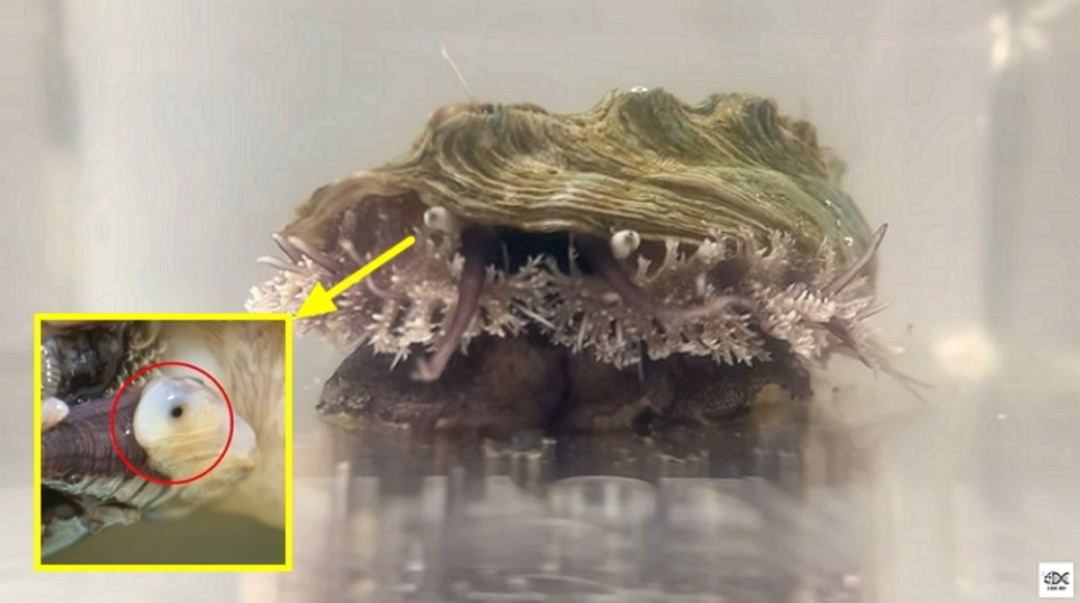 전복의 입 주변을 살펴보면 더듬이처럼 튀어나온 부분이 있는데, 이곳이 바로 전복의 눈이다. 완도 수산물법인 홈페이지에 따르면 전복에는 한 쌍의 더듬이와 눈이 있다.