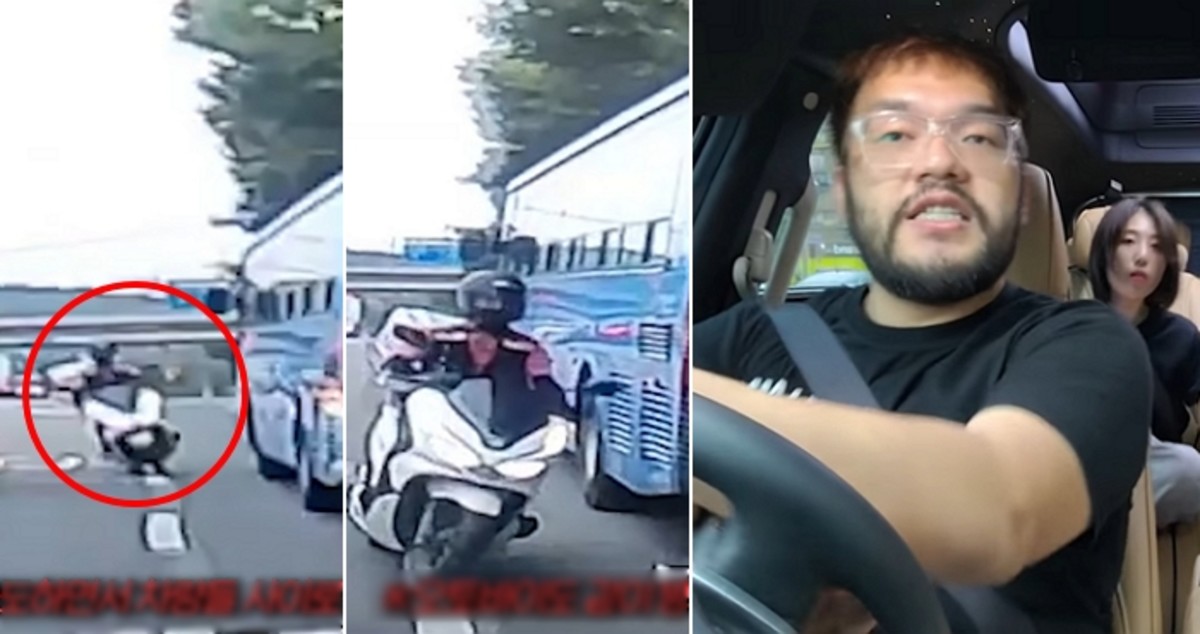 그는 "와 오토바이 역주행 하는 거 봐"라며 클랙슨을 울렸다. 이어 급하게 브레이크를 밟으며 오토바이 운전자를 향해 "야, 야!"라며 큰 소리를 쳤다.