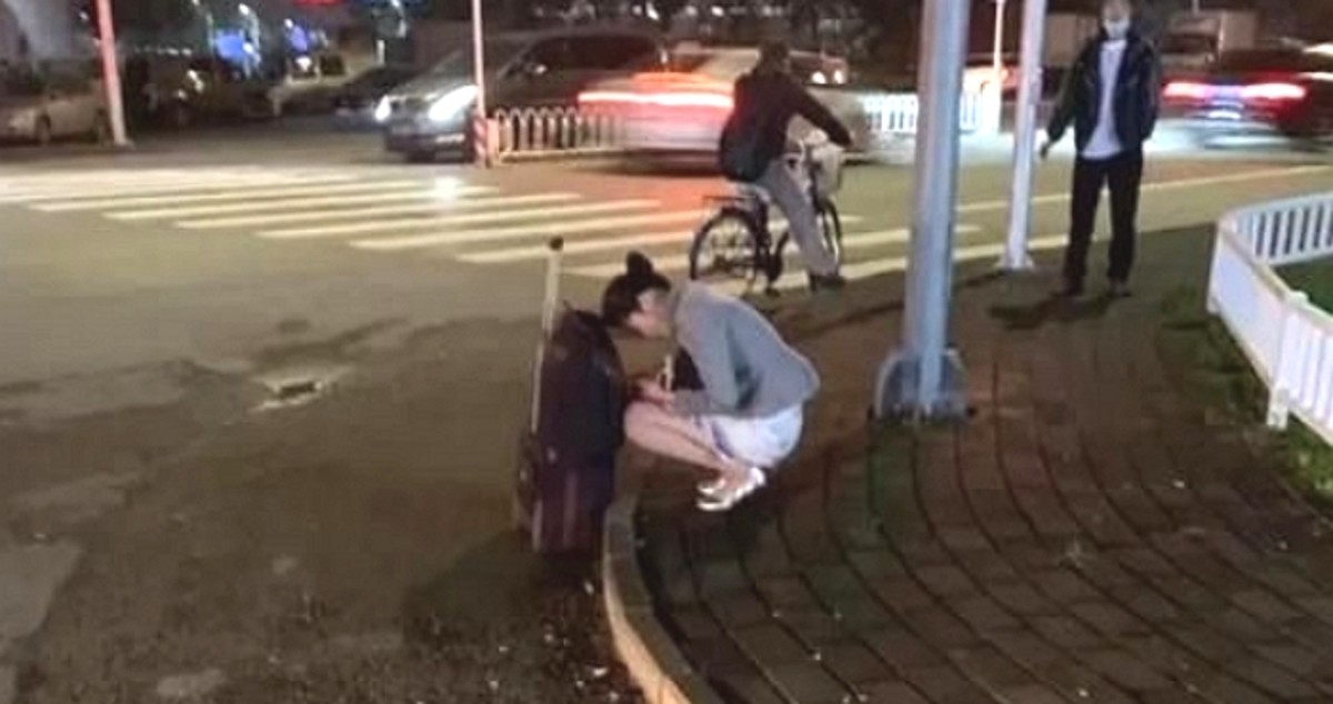 보도에 따르면 지난 9일 인터넷상에는 베이징에서 한 스튜어디스가 길가에 웅크리고 있는 모습이 담긴 사진이 올라왔다.