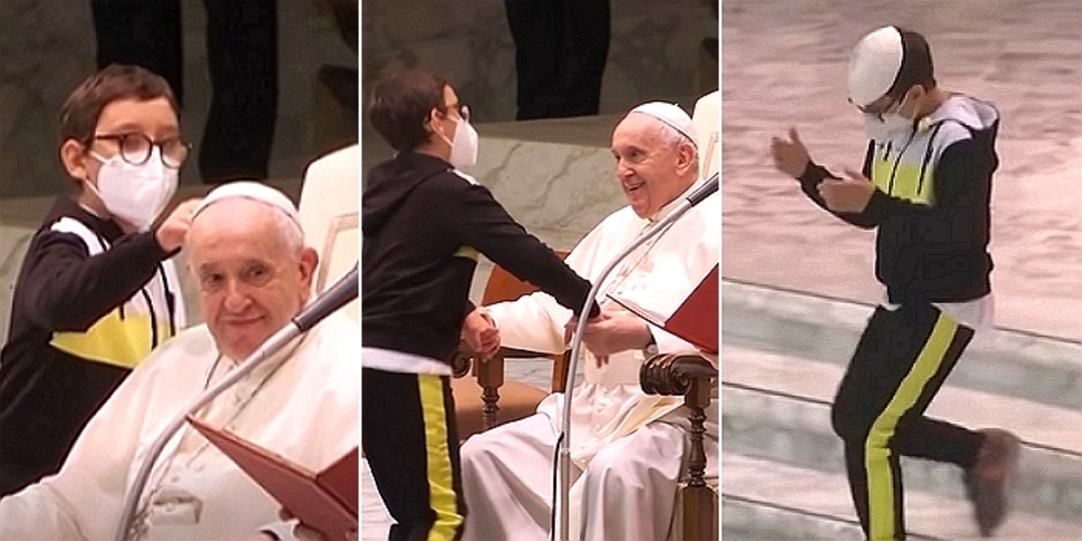파올로는 천진난만하게 교황이 쓴 주케토를 만지는가 하면 교황의 손을 잡고 방방 뛰기도 했다.