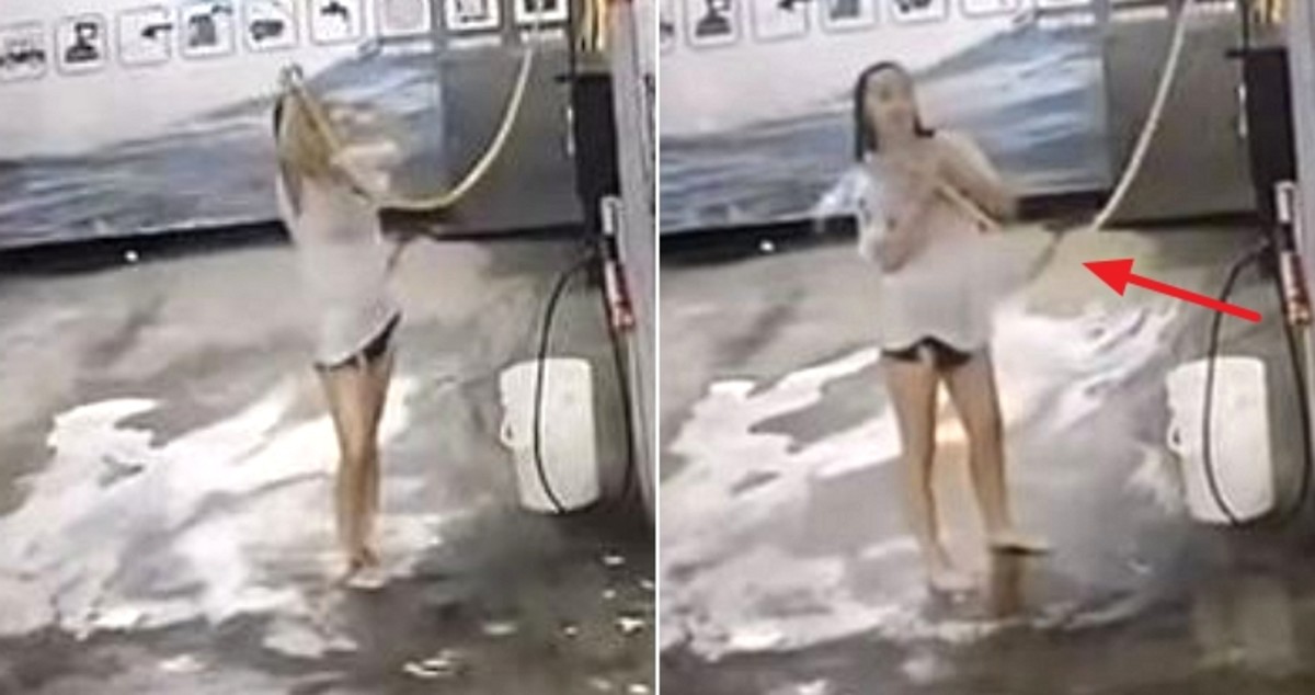 지난 4일(현지 시간) 온라인 미디어 'TEEPR'는 세차장에서 온몸을 씻는 한 여성의 모습이 담긴 CCTV 영상을 소개했다.