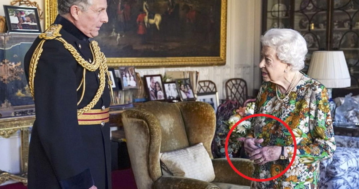 그런데 여왕의 모습을 담은 사진에서 '보라색 손'이 포착돼 논란이다.