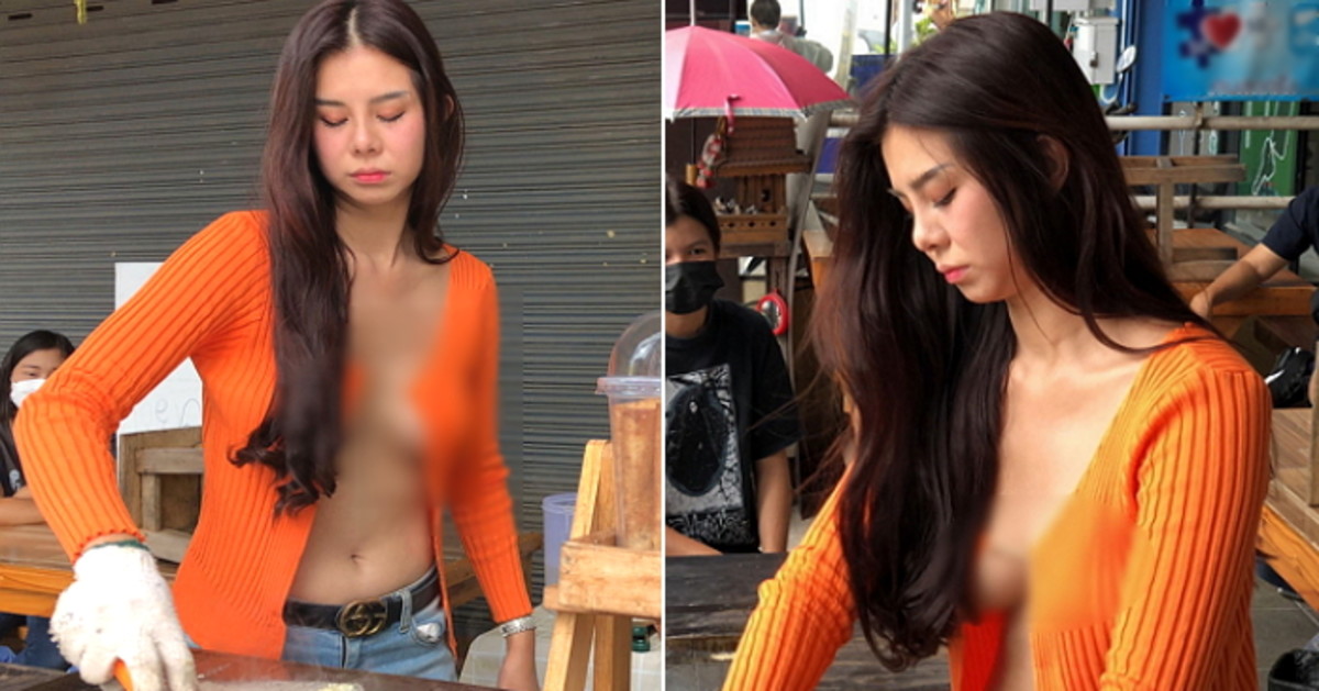 누리꾼들이 올린 인증샷에서 그녀는 노브라에 얇은 가디건 하나만 걸친 채 크레페를 만들고 있었다.