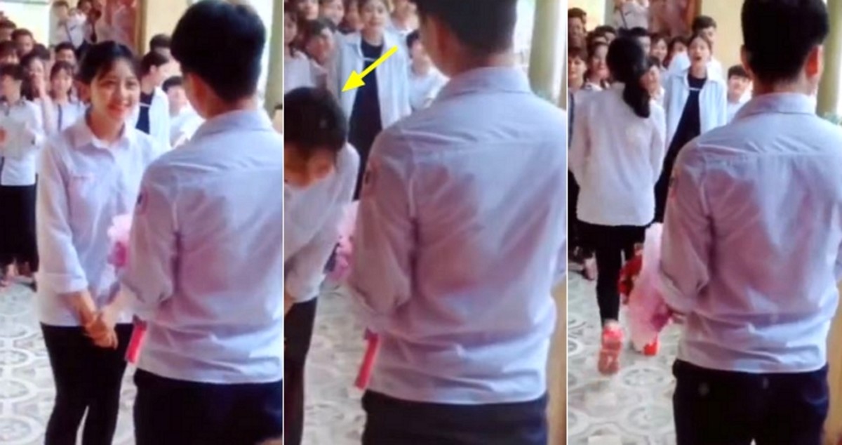영상 속 남학생은 전교생이 지켜보는 앞에서 자신이 짝사랑하는 여학생을 불러냈다.