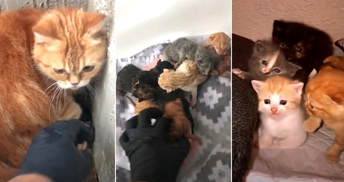 녀석은 도움을 구하는 듯 '야옹~'하며 말을 걸어댔고, 새끼 고양이들을 품에 안는 모습을 보였다.