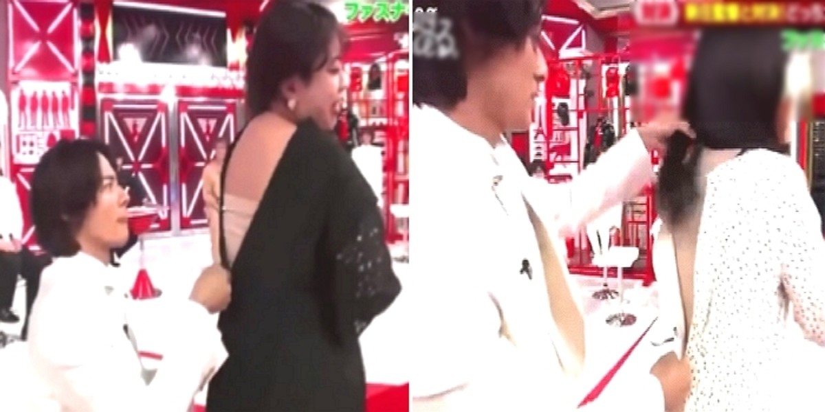 해당 방송에서 여성 출연자들이 원피스 뒷지퍼를 내린 채 히라노 쇼 앞에 줄지어 서 있었다.