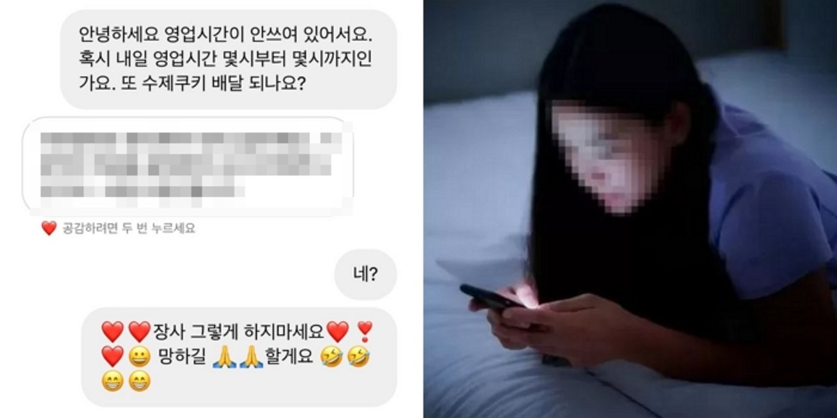 이날 A씨는 "안녕하세요, 영업 시간이 안 쓰여 있어서요. 혹시 내일 영업시간 몇 시부터 몇 시 까지인가요. 또 수제 쿠키 배달 되나요?"라는 메시지를 보냈다.