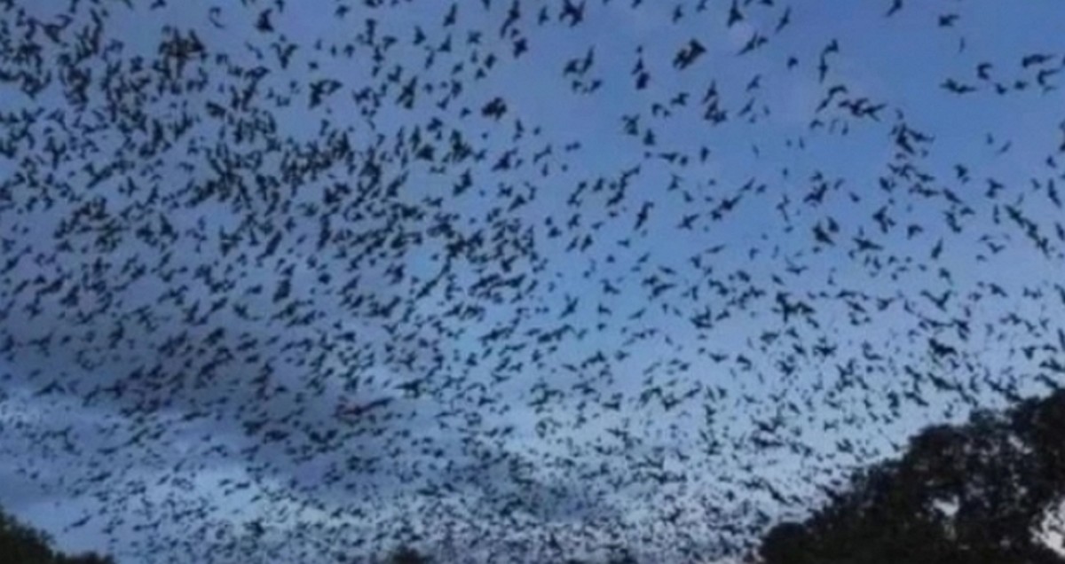 공개된 영상 속에는 쓰촨성 더양시 몐주(Mianzhu) 지역 하늘을 완전히 뒤덮은 박쥐 떼의 모습이 담겨 보는 이들을 경악게 한다.