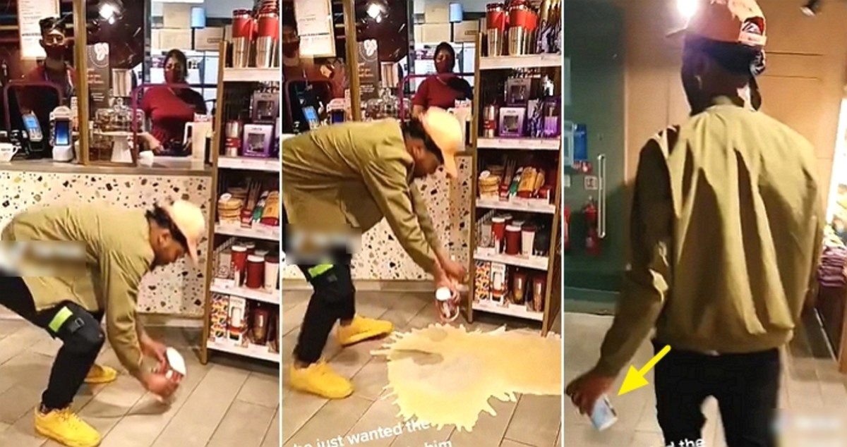 영상에는 미국의 한 스타벅스 매장 바닥에 음료를 버리는 남성의 모습이 담겼다.