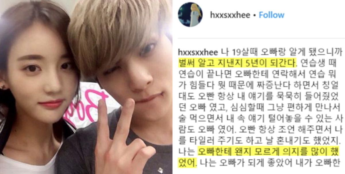 지난 18일 한서희는 자신의 인스타그램을 통해 종현의 모습이 담긴 사진 한 장과 함께 장문의 글을 게재했다.