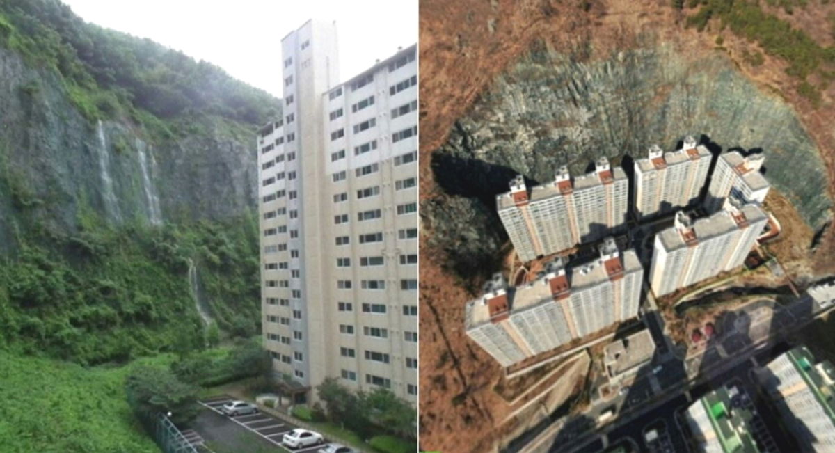 아파트 뒤로는 깎아지른 듯한 절벽이 있으며, 단지 내에는 계곡(?)도 흘러 마치 '반지의 제왕'에 등장하는 '헬름 협곡'을 떠오르게 한다.