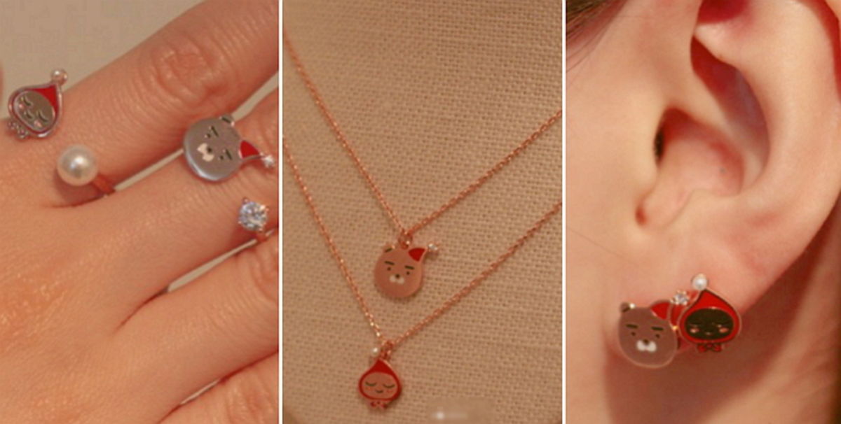 이번에 새로 나온 주얼리는 목걸이와 귀걸이, 반지 등 총 3가지다. 각각 라이언과 어피치 제품이 따로 있다.