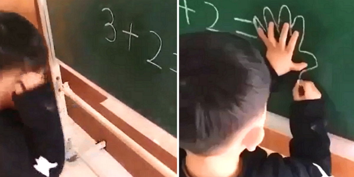 아이가 칠판에 적은 답은 숫자 '5'가 아닌 친구가 펼쳐 보인 손바닥 모양을 똑같이 그려냈던 것이다.